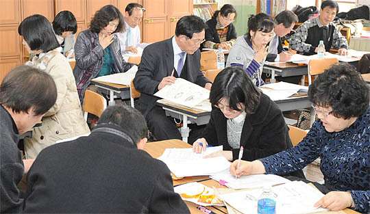 26일 전주 전일초등학교에서 교사들이 교육과학기술부의 학업성취도평가 재점검 지침에 따라 재채점을 하고 있다.