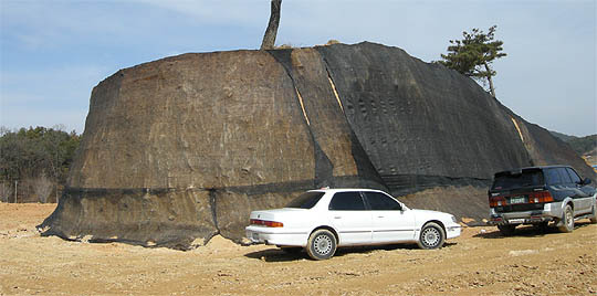취재진이 찾아간 이날도 이곳에서 한창 부지 정리 작업이 진행되고 있었으며 이미 공사가 어느 정도 이루어져 양씨의 가족묘지 7기가 자리하고 있는 일대만 남기고 흙을 모두 파내 흉물스런 상태로 변해있었다.