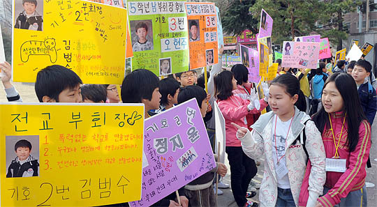 12일 전주 서일초등학교 교문 앞에서 회장선거에 나선 친구를 도와 유세를 하고 있다.