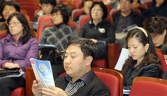 16일 전주시청 강당에서 열린 2009 글로벌체험 해외연수 순회 설명회에서 참석자들이 강사의 설명을 듣고 있다.