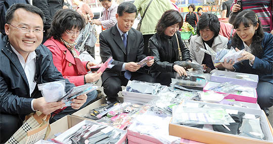 18일 전주 덕진구청 직원들이 전통시장 활성화와, 지역경제 살리기의 일환으로 전주 모래네 시장에서 물건을 구입하고 있다.