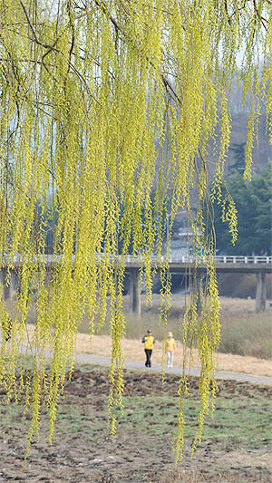 이상고온 현상으로 버드나무가 예년보다 빨리 눈을 떴다.