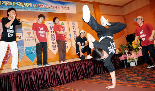 30일 전주 리베라호텔에서 열린 청소년수련시설 지도자 역량강화 및 청소년수련시설 홍보전에서 식전행사로 B-BOY팀인 이스트 기네시 쿠르팀이 공연을 하고 있다.