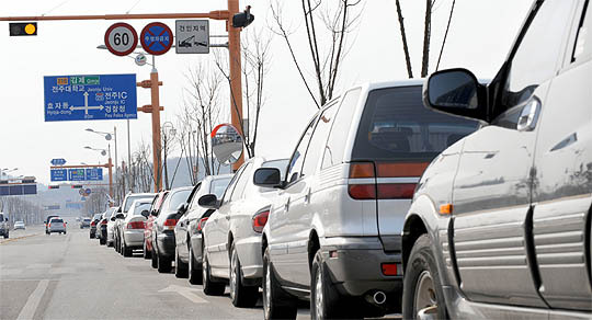 1일 전북도청 후문 뒷편 도로에는 견인지역, 주·정차 금지 표지판이 명시돼어 있지만 이를 비웃듯 많은 차량들이 줄지어 세워져 있다.