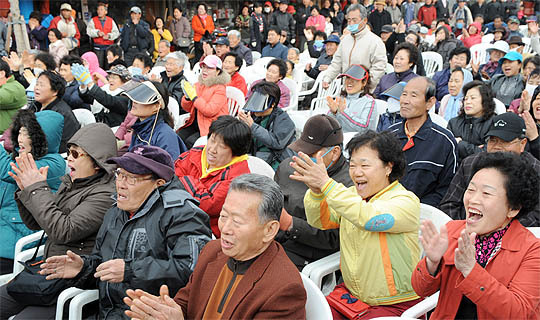 1일 전주시 풍남동 동문상점가 특설무대에서 열린 한마당축제에서 주민들이 초청가수의 축하공연을 보며 즐거워하고 있다.
