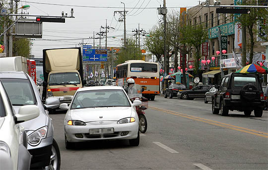 고창군청~터미널 구간의 관통도로. 상가가 밀집한 고창읍 중심지인데다 차량 통행이 빈번한 왕복 4차선 도로인 이 구간은 이중 주차로 인한 교통 체증과 교통사고 위험이 상존, 민원이 끊이지 않은 곳이다. 고창군은 이 곳에 4대의 주정차 위반 단속카메라를 설치한 뒤 지난 2월부터 본격 단속에 나섰다.