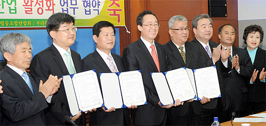 13일 전주시청 회의실에서 열린 한의학산업 활성화 업무협약 체결식에서 참석자들이 협약식을 마치고 기념촬영을 하고 있다.