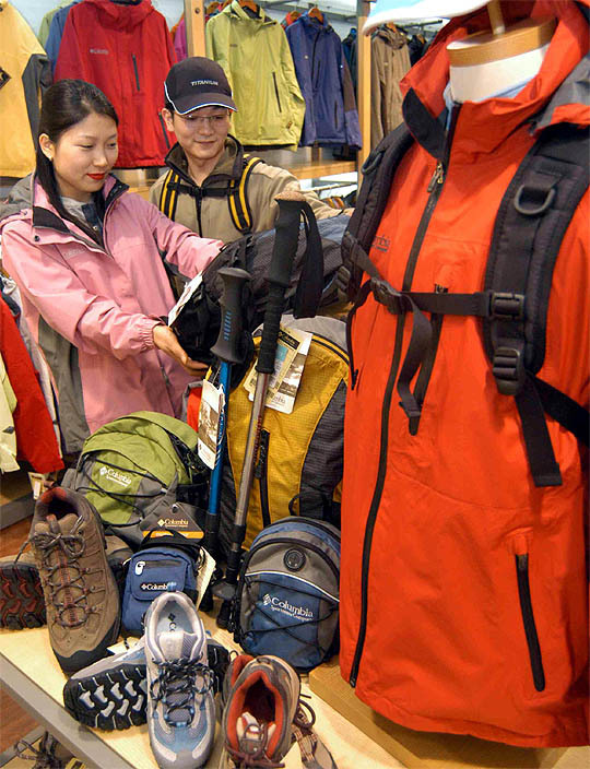 15일 전주시 서신동 롯데백화점 등산용품 매장을 찾은 고객이 다양한 색상으로 출시된 등산복을 고르고 있다.