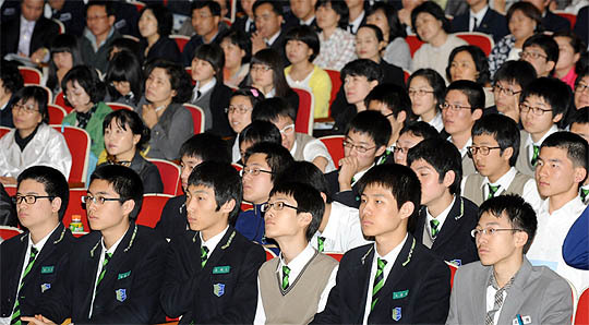 15일 전북 교육문화회관에서 열린 2010학년도 서울대학교 입시설명회에서 수험생과 교사등 1000여명이 참석한 가운데 서울대 입시요강등에 대해 설명을 듣고 있다.