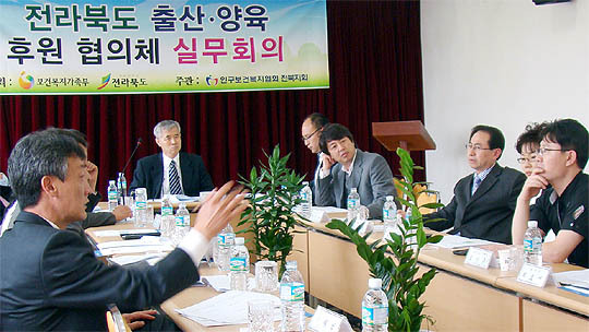 16일 전주 인구보건복지협회 전북지부 회의실에서 열린 전라북도 출산 양육 후원협의체 제1차 실무회의에서 참석자들이 토론을 하고 있다. 이날 실무회의를 통해 09년도 지역특색사업 세부 추진방법과, 직능 단체별 역할등은 논의 했다.