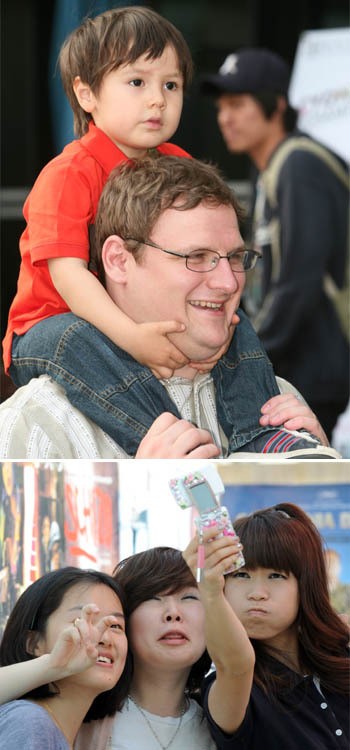 아이를 무동태운 외국인 아빠의 즐거운 표정과 '셀카놀이'에 한창인 여학생들이 전주영화제의 즐거움을 더한다.