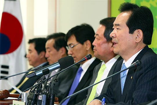 정세균 민주당 대표가 13일 서울 여의도 당사에서 열린 최고위원회의에서 경찰이 발표한 '불법폭력시위단체' 목록에 대해 "반대편은 탄압하고 자기편은 두둔하는 참 잘못된 편파적 국정운영"이라고 비판한 뒤, "검찰의 박연차 게이트 수사도 현 정권의 실세는 수사하지 않는 것 또한 권력의 시녀로 전락할 수 있는 편가르기"라고 강조하고 있다.