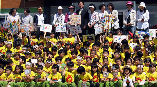 경북 영천 중앙유치원생들. 이들은 18일 시민을 대상으로 금연 거리 캠페인을 벌였다.