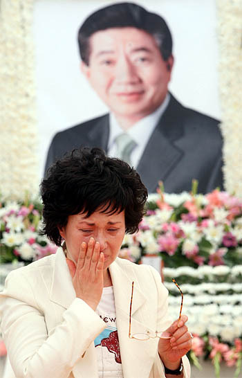 25일 노무현 전대통령의 분향소가 마련된 전주시 고사동 오거리문화광장에 눈물의 조문이 계속되고 있다.