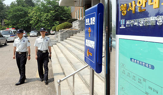 경찰 병력이 25일 시위 등에 대비해 전주지방검찰청 앞에서 경계 근무를 서고 있다.
