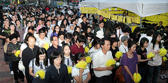 노무현 전 대통령 분향소가 마련된 전주 오거리문화광장을 찾아 조문한 시민들은 26일 현재 1만7000여명으로 추산하고 있다.