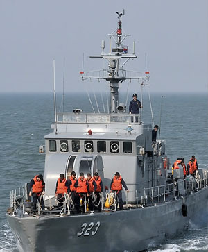 연평도 해상에서 경계근무 서는 해군 고속정