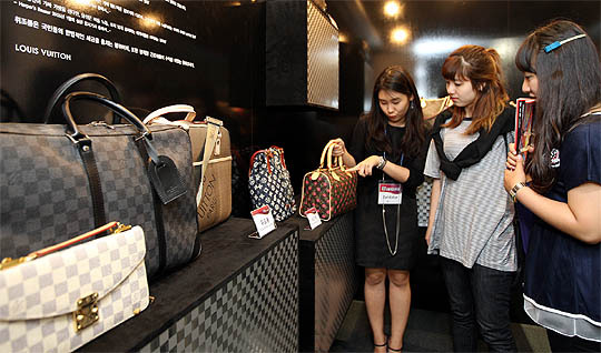 27일 관세청 주최로 서울 강남구 삼성동 코엑스에서 열린 2009 위조상품비교전시회에서 관람객들이 한 명품 브랜드 업체 관계자로부터 진품과 위품의 구별방법을 배우고 있다.