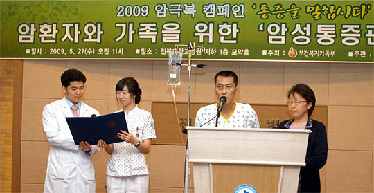 전북대병원 전북지역암센터가 27일 '2009 통증을 말합시다' 캠페인을 열었다.