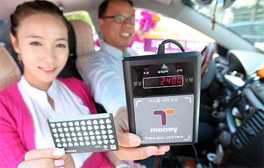 서울·인천지역 택시기본요금이 2천400원으로 인상된 1일 서울 광화문 세종로사거리에서 열린 '카드택시 소액요금 카드결제 활성화' 캠페인에서 승객이 인상된 기본요금 2천400원을 'T-머니' 카드로 지불하고 있다.