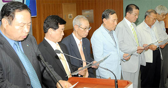 전북지역 기독교계와 재야인사 로 구성된 전북인권선교협의회원들이 5일 도청 브리핑룸에서 이 땅의 민주주의는 현 정권과 집권당의 폭정으로 사멸의 위기에 직면했다는 시국 선언문을 발표하고 있다.