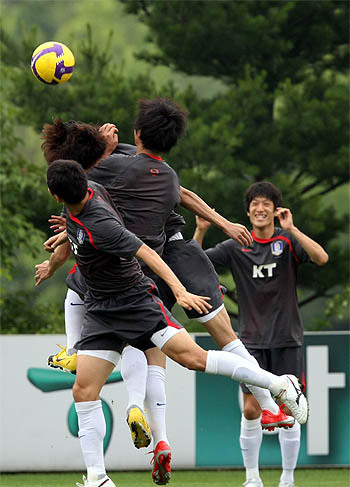 7회 연속 월드컵 본선에 진출한 한국 축구 대표팀의 박지성이 사우디아라비아와의 2010 남아프리카공화국 월드컵 아시아지역 최종예선 7차전 경기를 하루 앞둔 9일 파주 축구대표팀 트레이닝센터(NFC)에서 훈련하고 있다.