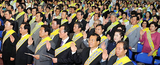 주공 토공 통합본사 유치를 위한 '범 도민 한국토지주택공사 본사유치 추진위원회가 15일 전북도청 대회의실에서 김완주 지사와 지역 국회의원, 도내 주요 사회단체장 등 300여명이 참석한 가운데 결의문을 채택하고 출범했다.