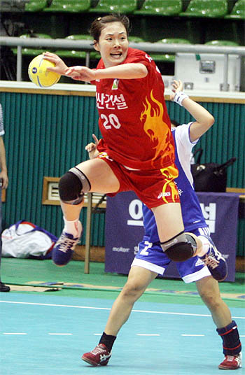 24일 오후 청주국민생활관에서 열린 2009 다이소 핸드볼슈퍼리그 여자부 벽산건설과 정읍시청의 경기에서 벽산건설 김경화가 슛을 날리고 있다.
