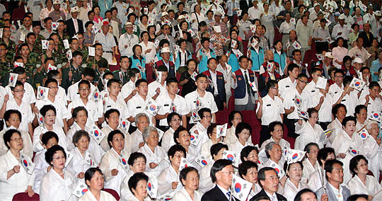 25일 전북대학교문화관에서 열린 '6.25전쟁 제 59주년 기념식'. 국가 유공자들 및 참전용사와 각계인사들이 참석했다.