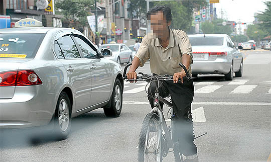6일 전북대학교 인근 도로에서 한 시민이 자전거를 타며 도로를 역주행 하고 있다.