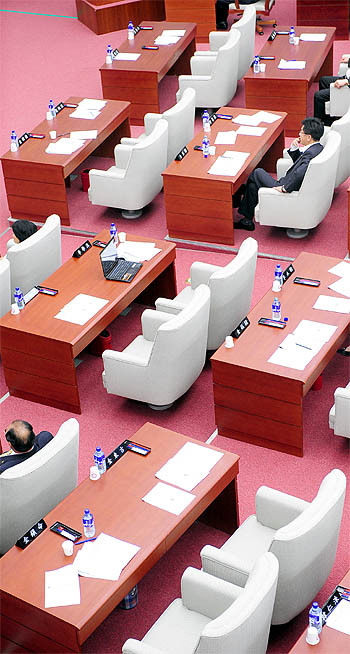 도정질문 첫날인 14일 오후 4시 9분, 최병희 의원이 김완주 지사를 상대로 보충질문을 하는 동안 도의회 의원석에는 전체의원 37명중 단 17명만이 자리를 지켰다.
