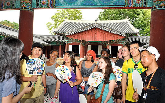14일, EIL 미국 본부 월드러닝(World Learning)과 한국 본부 국제문화교류기구가 주관하는 '2009 미국 월드러닝 청소년 여름캠프'에 참가한 미국 고등학생 11명이 전주 한옥마을 내 경기전을 둘러보고 있다