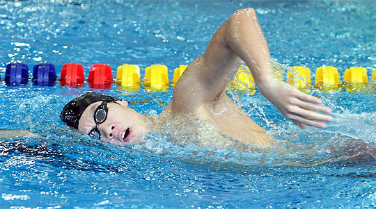 2009 국제수영연맹(FINA) 세계수영선수권대회에 참가하는 박태환 선수가 16일 오후 태릉선수촌에서 수영을 하고 있다.