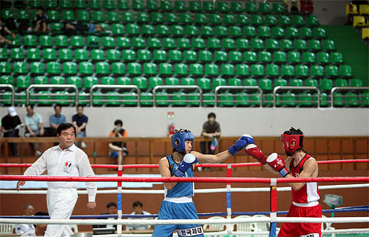 오는 21일까지 전주화산체육관에서 제59회 전국중고대복싱선수권대회와 제4회 전국실업복싱선수권대회, 제8회 전국여자아마추어복싱선수권대회가 동시에 열리고 있는 가운데 경기장 내 관람객들이 별로 없어 한산한 모습을 보이고 있다.