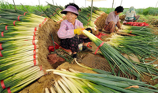 춘파(봄에 파종한 대파) 재배농가들이 최근 내린 집중호우와 잦은 비 덕에 고소득을 올리고 있다. 3일 완주군 봉동읍 구만리 농민들이 춘파 수확에 구슬 땀을 흘리고 있다.