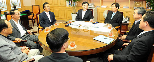 3일 전북도청 정무부지사실에서 열린 전통시장 활성화와 저소득층 생활안정을 위한 소액대출 및 소액보험 지원사업 협약식에서 참석자들이 대화를 나누고 있다.