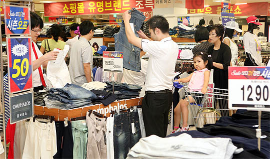 10일 홈플러스전주점에서 여름철 의류의 세일보다 더 강한 시즌오프 행사에 고객들이 몰려 여름철 의류를 고르고 있다.