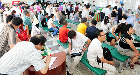 광복 64주년을 맞아 150만명이 넘는 운전면허 제재자가 특별감면된 가운데 17일 전주 운전면허시험장에 많은 인파가 몰려 운전면허 재취득 과정을 밟고 있다. (desk@jjan.kr)