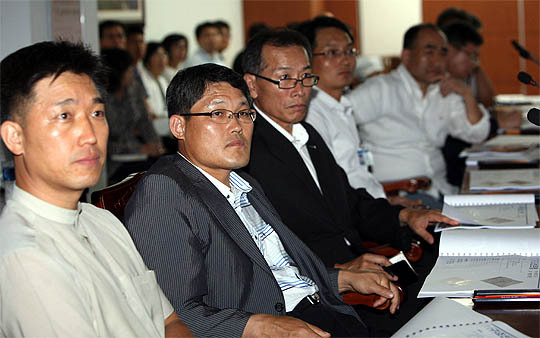19일 오후 군산시청 상황실에서 열린 '군산 근대역사문화 벨트화사업 마스터플랜 수립 용역 중간보고회'에서 참석자들이 용역기관의 발표를 지켜보고 있다.