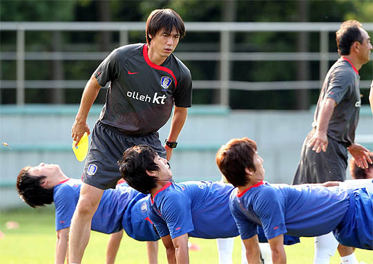 다음달 이집트에서 개막하는 국제축구연맹(FIFA) 청소년월드컵을 앞두고 24일 경기 파주 MFC에서 열린 U-20 청소년축구대표팀 훈련에서 홍명보 감독이 선수들의 훈련을 지도하고 있다. 홍 감독은"예선 통과가 쉽지 않지만, 통과를 한다면 토너먼트에서는 우리선수들에게 어드밴티지가 생길 수 있다"면서 16강 이상 진출을 목표로 잡았음을 시사했다.