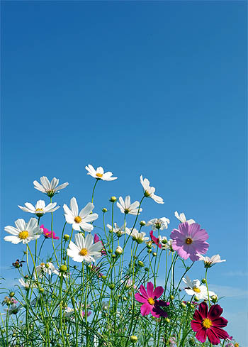가을로 접어들고 있다. 하늘이 물감을 풀어 놓은 듯 코발트 빛으로 물들었다. 청명한 날씨를 보인 1일 완주 봉동천 주변의 코스모스 꽃이 파란 하늘을 배경으로 활짝 피어 한 폭의 수채화 같다.
