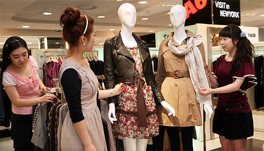본격적으로 가을 신상품이 대거 쏟아져 나오고 있는 가운데 2일 롯데백화점전주점에서 고객들이 가을에 입을 외투를 고르고 있다.