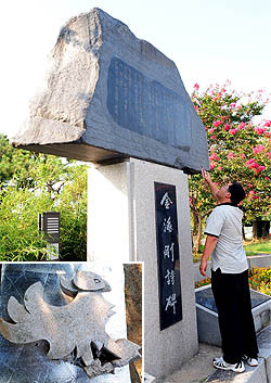8일 덕진공원 내에 김해강 시인의 시비 상단에 설치된 삼족조상이 파손돼 경찰이 수사에 나섰다. 이강민(lgm19740@jjan.kr)