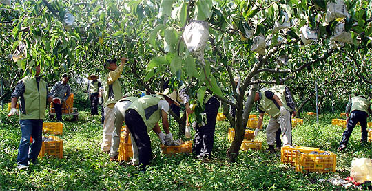 이날 60여명의 직원들은 1만여㎡의 배밭에 배수확 작업을 벌이며 구슬땀을 흘려 일손이 달려 어려움을 겪던 농가의 시름을 덜어줬다.