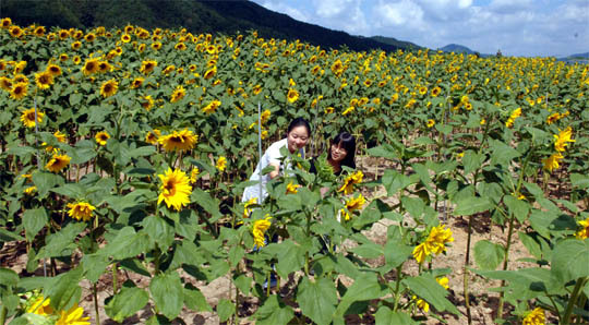 장계면(면장 한규하)은 희망근로 프로젝트 및 노인일자리사업과 연계해 지난 6월부터 논개 생가지 일대 등 유휴공간에 해바라기 1만㎡, 메밀3300㎡, 코스모스 1650㎡의 꽃밭을 조성했다.