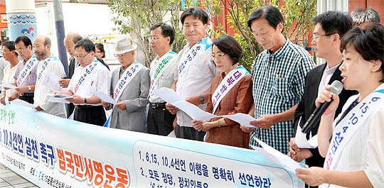 9일 전주 객사앞에서 6.15공동선언실천 남측위원회 전북본부가 한반도 평화실현, 6.15, 10.4선언 실천 촉구를 위한 범국민서명운동 기자회견을 가졌다.