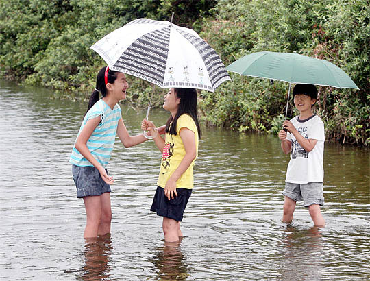 가을로 접어들면서 지난 여름을 추억하게 됩니다. 모처럼의 휴가를 긴 장마 때문에 망쳐 날씨를 원망한 사람도 있을 테고, 가족간 친구간 연인간 특별한 추억을 벌써 그리워 하는 사람도 있겠지요. 주말 따사로운 햇빛이 지난 여름을 더욱 생각나게 합니다. 아이들은 그 여름이 못잊어서인지 다시 물속으로 들어갔습니다. 며칠만 지나면 물속도 차가워져 '즐기는 물'이 아닌 '보는 물'이 되겠죠.