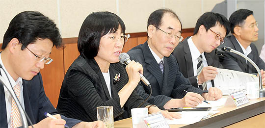 11일 대한주부클럽 연합회 전주전북지회 소비자정보센터에서 열린 대·중소 유통업 상생제도를 위한 토론회에서 참석자들이 대형 유통업 규제 개정방향등을 논의하고 있다.