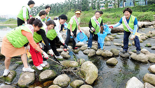 추석을 20여일 앞둔 14일 전주 덕진구 사랑의 울타리 자원봉사자들이 귀성객들에게 깨끗한 전주의 이미지를 심어주기 위해 환경 정화활동을 하고 있다.