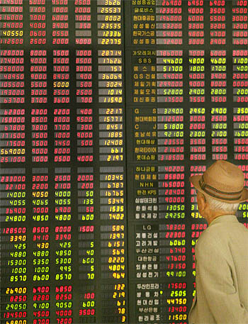 리먼사태 이후 900선까지 떨어졌던 코스피지수가 16일 장중 한때 1690선을 돌파하는 등 이틀연속 최고치를 경신해 전날보다 29포인트 오른 1683을 기록하고 장을 마감했다. 대신증권 전주점에서 한 투자자가 주식시세판을 살펴보고 있다.